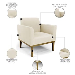 Você está procurando uma poltrona que combine com a sua Sala De Estar, recepção ou seu quarto, que ofereça conforto e qualidade? Então você vai adorar a Poltrona Decorativa Base Madeira Castanho Maressa Linho Bege, da Ibiza!