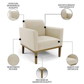 Você está procurando uma poltrona que combine com a sua Sala De Estar, recepção ou seu quarto, que ofereça conforto e qualidade? Então você vai adorar a Poltrona Decorativa Base Madeira Castanho Maressa Suede Bege, da Ibiza!