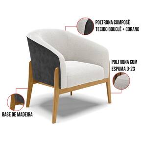 A Poltrona Decorativa Stella é a combinação perfeita de conforto, elegância e modernidade. Seu design curvo e marcante oferece uma sensação única de aconchego, como um abraço acolhedor, tornando-se a peça ideal para compor sua decoração com estilo e sofisticação. Revestida em Sintético PU Preto com Bouclê Off White, a poltrona traz o toque da tendência atual. Seja na sala de estar, quarto ou escritório, ela se adapta com facilidade. Sua estrutura robusta é sustentada por uma base de madeira (fixa), unindo resistência e design contemporâneo. A tendência desse estilo minimalista ganha destaque, conferindo sofisticação ao móvel, que é perfeito para qualquer espaço que exija funcionalidade e bom gosto. Com enchimento em espuma D-23 no encosto e assento, a Poltrona Decorativa Stella garante o máximo de conforto, mesmo em longos períodos de uso. Além desse modelo, também temos várias opções em base/pés e uma grande variedade de tecido/cores para atender ao seu estilo e conforto. E para deixar seu ambiente ainda mais harmonioso, oferecemos também kits especiais no mesmo design. Caso queira ajuda para escolher a melhor opção para o seu espaço, estamos à disposição! Garanta ja seu Kit 2 Poltronas.