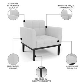 Esta Poltrona Decorativa é revestida em Linho, que é durável e fácil de limpar, e ainda valoriza o design da poltrona. Os braços e encosto são confortáveis em espuma D-18, já o assento é com espuma D-26 de alta densidade, que garante um assento firme e aconchegante, ideal para relaxar após um dia cansativo. A base em madeira de eucalipto é um charme à parte, que confere um toque Rústico e sofisticado à peça. A poltrona tem uma estrutura resistente e suporta até 120 kg. A montagem é muito simples, pois a Poltrona já vem pronta, bastando apenas fixar a base com os parafusos que acompanham o produto. A limpeza também é muito prática, pois basta utilizar um pano limpo e levemente úmido, sem produtos abrasivos, para manter a sua poltrona sempre em bom estado. Sem dúvidas um item que vai transformar a sua sala em um ambiente mais confortável e estiloso!
