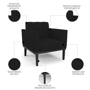 Altura: 81 cm | AssemblyRequired: Sim, sugerimos a contratação do nosso serviço de montagem (para os CEPs em que o serviço está dispon | Color: Preto | ColorFamily: Preto | ColorSimple: Preto | ColorSupplier: Preto | Cor: Preto | Gênero: Unisex | Largura: 64 cm | Manual: Sim | Marca: Ibiza | Model: Ana | Origem: | OriginCountry: | OriginState: PR | Peso: 17 kg | Peso Suportado: 120 kg | ProductContents: 1 Poltrona | ProductHeight: 81 | ProductInstructions: Produto para uso em ambiente interno, nao devendo ficar exposto ao sol, calor e umidade excessivos. | ProductLength: 64 | ProductWarranty: 90 dias após o do produto | ProductWeight: 17 | ProductWidth: 64 | Profundidade: 64 cm | Requere montagem: Sim | SizeDescription: 81 x 64 x 64 cm | SupplierSimpleName: Poltrona Decorativa Base Madeira Preto Ana Linho Preto - Ibiza | Tipo de : Fabricante