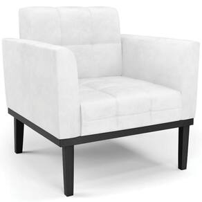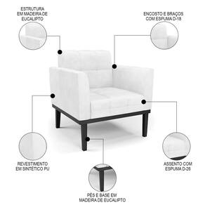 Você está procurando uma poltrona que combine com a sua Sala De Estar, recepção ou seu quarto, que ofereça conforto e qualidade? Então você vai adorar a Poltrona Decorativa Base Madeira Preto Ana Sintético PU Branco, da Ibiza!