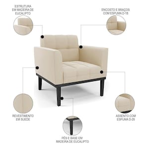 Você está procurando uma poltrona que combine com a sua Sala De Estar, recepção ou seu quarto, que ofereça conforto e qualidade? Então você vai adorar a Poltrona Decorativa Base Madeira Preto Ana Suede Bege, da Ibiza!
