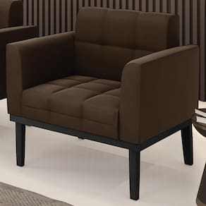 Você está procurando uma poltrona que combine com a sua Sala De Estar, recepção ou seu quarto, que ofereça conforto e qualidade? Então você vai adorar a Poltrona Decorativa Base Madeira Preto Ana Suede Marrom, da Ibiza!