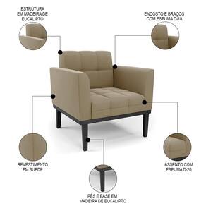 Esta Poltrona Decorativa é revestida em Suede, que é durável e fácil de limpar, e ainda valoriza o design da poltrona. Os braços e encosto são confortáveis em espuma D-18, já o assento é com espuma D-26 de alta densidade, que garante um assento firme e aconchegante, ideal para relaxar após um dia cansativo. A base em madeira de eucalipto é um charme à parte, que confere um toque Rústico e sofisticado à peça. A poltrona tem uma estrutura resistente e suporta até 120 kg. A montagem é muito simples, pois a Poltrona já vem pronta, bastando apenas fixar a base com os parafusos que acompanham o produto. A limpeza também é muito prática, pois basta utilizar um pano limpo e levemente úmido, sem produtos abrasivos, para manter a sua poltrona sempre em bom estado. Sem dúvidas um item que vai transformar a sua sala em um ambiente mais confortável e estiloso!
