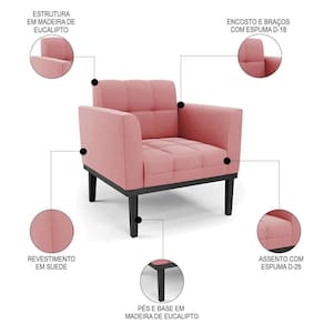 Você está procurando uma poltrona que combine com a sua Sala De Estar, recepção ou seu quarto, que ofereça conforto e qualidade? Então você vai adorar a Poltrona Decorativa Base Madeira Preto Ana Suede Rosê, da Ibiza!