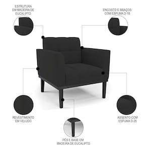 Você está procurando uma poltrona que combine com a sua Sala De Estar, recepção ou seu quarto, que ofereça conforto e qualidade? Então você vai adorar a Poltrona Decorativa Base Madeira Preto Ana Veludo Preto, da Ibiza!