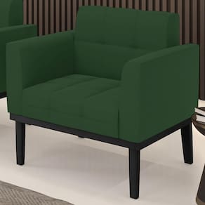 Você está procurando uma poltrona que combine com a sua Sala De Estar, recepção ou seu quarto, que ofereça conforto e qualidade? Então você vai adorar a Poltrona Decorativa Base Madeira Preto Ana Veludo Verde, da Ibiza!