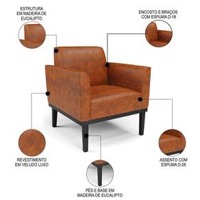 Esta Poltrona Decorativa é revestida em sintético PU, que é durável e fácil de limpar, e ainda valoriza o design da poltrona. Os braços e encosto são confortáveis em espuma D-18, já o assento é com espuma D-26 de alta densidade, que garante um assento firme e aconchegante, ideal para relaxar após um dia cansativo. A base em madeira de eucalipto é um charme à parte, que confere um toque Rústico e sofisticado à peça. A poltrona tem uma estrutura resistente e suporta até 120 kg. A montagem é muito simples, pois a Poltrona já vem pronta, bastando apenas fixar a base com os parafusos que acompanham o produto. A limpeza também é muito prática, pois basta utilizar um pano limpo e levemente úmido, sem produtos abrasivos, para manter a sua poltrona sempre em bom estado. Sem dúvidas um item que vai transformar a sua sala em um ambiente mais confortável e estiloso!