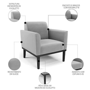 Você está procurando uma poltrona que combine com a sua Sala De Estar, recepção ou seu quarto, que ofereça conforto e qualidade? Então você vai adorar a Poltrona Decorativa Base Madeira Preto Maressa Suede Cinza, da Ibiza!