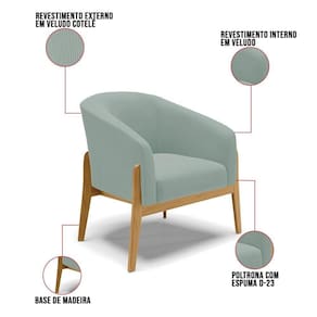 A Poltrona Decorativa Stella é a combinação perfeita de conforto, elegância e modernidade. Seu design curvo e marcante oferece uma sensação única de aconchego, como um abraço acolhedor, tornando-se a peça ideal para compor sua decoração com estilo e sofisticação. Revestida em veludo cotelê na cor menta, a poltrona Stella apresenta um encosto com acabamento texturizado e volumoso interno que lembra um plissado, adicionando um toque elegante e alinhado às tendências atuais. Seja na sala de estar, quarto ou escritório, ela se adapta com facilidade. Sua estrutura robusta é sustentada por uma base de madeira (fixa), unindo resistência e design contemporâneo. A tendência desse estilo minimalista ganha destaque, conferindo sofisticação ao móvel, que é perfeito para qualquer espaço que exija funcionalidade e bom gosto. Com enchimento em espuma D-23 no encosto e assento, a Poltrona Decorativa Stella garante o máximo de conforto, mesmo em longos períodos de uso. Além desse modelo, também temos várias opções em base/pés e uma grande variedade de tecido/cores para atender ao seu estilo e conforto. E para deixar seu ambiente ainda mais harmonioso, oferecemos também kits especiais no mesmo design. Caso queira ajuda para escolher a melhor opção para o seu espaço, estamos à disposição! OBSERVAÇÃO IMPORTANTE: A é realizada no informado, não realizamos o para andares superiores, como subir escadas, elevadores ou guinchos. Não realizamos montagens, desmontagens ou instalações. Todos esses serviços são de responsabilidade do comprador. Dimensões do Produto: Altura Total: 81 cm Largura Total: 85 cm Profundidade Total: 60 cm Altura do Encosto: 40 cm Largura do Assento: 45 cm Profundidade do Assento: 45 cm Altura do chão ao Assento: 45 cm Espessura do Assento: 15 cm Espessura do braço: 7 cm Altura do chão ao braço: 52 cm Altura interna do braço: 28 cm Tamanho dos pés: 30 cm Peso: 20 Especificações do Produto: Estrutura: Madeira Eucalipto Espuma: D-23 Tecido: Veludo Cotelê, com acabamento texturizado interno Peso Suportado: Até 120 Kg Tipo de Pés: Base de Madeira Tipo de Encosto: Fixo Tipo de Assento: Fixo Complexidade da Montagem: Baixo Montagem: O produto vai montado, apenas parafusar a base : 90 dias contra de fabricação Instruções de Limpeza: Utilizar um pano limpo e levemente úmido Você irá Receber: 01 Poltrona - Entregue em: 01 Volume