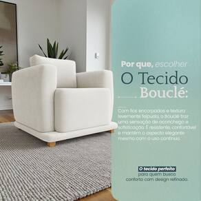 Tecido Bouclé Premium, Espuma D26, Fibra siliconada importada, Flocos de espuma, Madeira maciça, MadeiraVendido e entregue por CLIQUE & DECORE