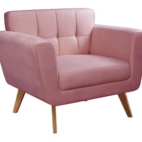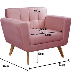 1 Base Pés. Acompanha Almofadas extras: Não Acompanha Puff: Não Almofada do assento: Não Possui Almofada do encosto: Não Possui Altura do assento até o chão: 47 Altura do Encosto: 37 Ambiente Principal: Sala de Estar Cor: Rosa Cor do Produto: Rosa Design Assinado: Não Enchimento do Braço: Espuma D-26 Encosto para a Cabeça: Não Estampado: Não Extensível: Não Itens Inclusos: 1 Poltrona, Kit Pés Material do Braço: Madeira Eucalipto Material dos Pés: Madeira Eucalípto Modelo de Poltrona: Fixo Necessita Montagem: Não Origem do Produto: Nacional Peso: 24 kg Possui Percintas Elásticas: Sim Possui Pés: 04 Possui Rodízio: Não Recomendações de Uso, Manutenção e Limpeza: x Suporta Até (kg): 120 Tecido Predominante: Suede Tipo de Assento: Fixo Tipo de Encosto: Fixo Tipo de Poltrona: Decorativa