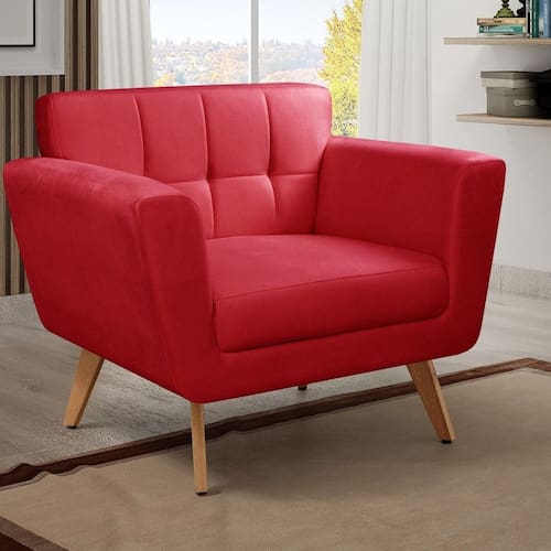 1 Base Pés. Acompanha Almofadas extras: Não Acompanha Puff: Não Almofada do assento: Não Possui Almofada do encosto: Não Possui Altura do assento até o chão: 47 Altura do Encosto: 37 Ambiente Principal: Sala de Estar Cor: Vermelho Cor do Produto: Vermelho Design Assinado: Não Enchimento do Braço: Espuma D-26 Encosto para a Cabeça: Não Estampado: Não Extensível: Não Itens Inclusos: 1 Poltrona, Kit Pés Material do Braço: Madeira Eucalipto Material dos Pés: Madeira Eucalípto Modelo de Poltrona: Fixo Necessita Montagem: Não Origem do Produto: Nacional Peso: 24 kg Possui Percintas Elásticas: Sim Possui Pés: 04 Possui Rodízio: Não Recomendações de Uso, Manutenção e Limpeza: x Suporta Até (kg): 120 Tecido Predominante: Suede Tipo de Assento: Fixo Tipo de Encosto: Fixo Tipo de Poltrona: Decorativa