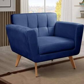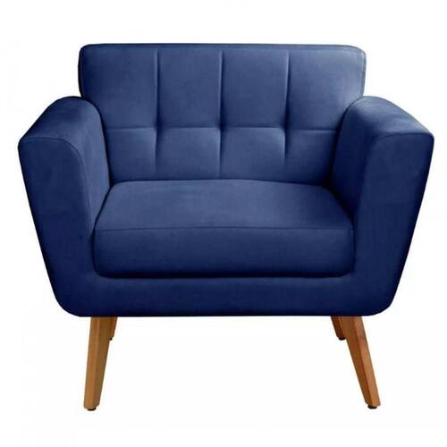 Poltrona Decorativa Bruna Sala Ou Recepção C/ Pés Madeira Veludo Azul Marinho Poltrona Decorativa Bruna Sala ou Recepcao C/ Pes Madeira Bella Decor A Poltrona Bruna traz muita seguranca e conforto para diversos ambientes. Uma poltrona totalmente estofada, com estrutura em madeira com espuma D26. Base tambem em madeira e assento fixo, perfeita para ambientes como sala de estar, recepcao, consultorios e quartos.
