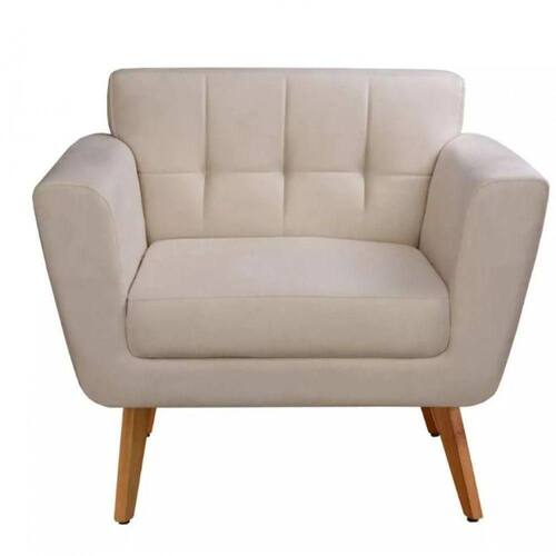 Poltrona Decorativa Bruna Sala Ou Recepção C/ Pés Madeira Veludo Bege Claro Poltrona Decorativa Bruna Sala ou Recepcao C/ Pes Madeira Bella Decor A Poltrona Bruna traz muita seguranca e conforto para diversos ambientes. Uma poltrona totalmente estofada, com estrutura em madeira com espuma D26. Base tambem em madeira e assento fixo, perfeita para ambientes como sala de estar, recepcao, consultorios e quartos.