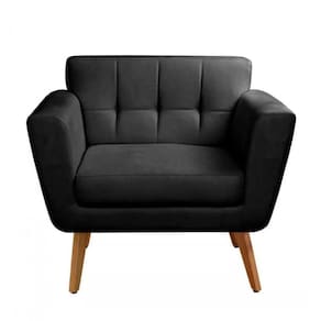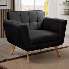 Poltrona Decorativa Bruna Sala Ou Recepção C/ Pés Madeira Veludo Preto Poltrona Decorativa Bruna Sala ou Recepcao C/ Pes Madeira Bella Decor A Poltrona Bruna traz muita seguranca e conforto para diversos ambientes. Uma poltrona totalmente estofada, com estrutura em madeira com espuma D26. Base tambem em madeira e assento fixo, perfeita para ambientes como sala de estar, recepcao, consultorios e quartos.