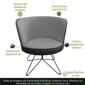Poltrona Decorativa Chiara Base Orby Corano Preto/velosuede Cinza - Nexta Casa