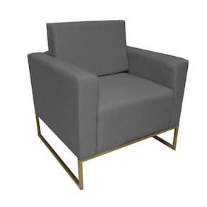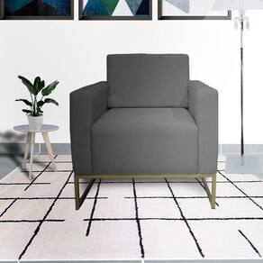 Poltrona Decorativa Com Base de Ferro Para Hall de Entrada Leticia Pé Ferro Suede Cinza - LM DECOR