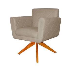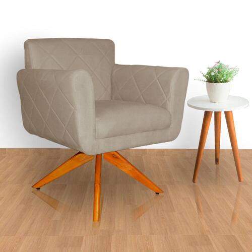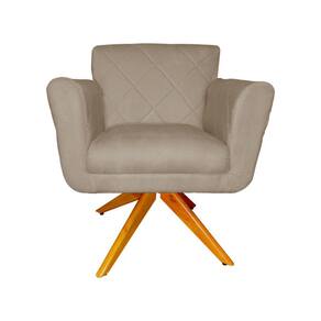 Poltrona Decorativa Com Base Giratória De Madeira Quarto Isabella Suede Cappuccino - LM DECOR - Bege Médio