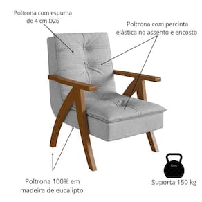 A Poltrona modelo 559 da Delazari é revestida em tecido linho, estrutura do assento e encosto em eucalipto, espuma com densidade 26 e percinta no assento e encosto. Seus pés são em madeira maciça e pintura em verniz PU. Além de trazer conforto e praticidade, é uma linda opção para decorar seu ambiente! Acompanha Almofadas extras: Não Acompanha Puff: Não Almofada do assento: Fixa Almofada do encosto: Fixa Altura do assento até o chão: 50 cm Altura do Encosto: 48 cm Altura dos Pés: 65 cm Ambiente Principal: Sala de Estar Complexidade da Montagem: Baixa: pode ser montado por uma pessoa sozinha Cor: Imbuia Cor do Produto: IMBUIA Design Assinado: Não Enchimento do Assento: Espuma D-26 Enchimento do Braço: Não Possui Enchimento do Encosto: Espuma D-26 Encosto para a Cabeça: Sim Estampado: Não Extensível: Não Firmeza do Assento: Médio Itens Inclusos: 1 Poltrona e Manual de Montagem Linha ou Coleção: 559 Material do Braço: madeira eucalipto Material dos Pés: madeira eucalipto Modelo de Poltrona: Fixo Necessita Montagem: Sim Origem do Produto: Nacional Peso: 16 kg Possui Percintas Elásticas: Sim Possui Pés: 04 Possui Rodízio: Não Recomendações de Uso, Manutenção e Limpeza: Limpar com Pano Umido Sistema de Montagem: parafusos Suporta Até (kg): 150 kg Tecido Predominante: Linho Tipo de Assento: Fixo Tipo de Encosto: Fixo Tipo de Espuma do Assento: Espuma Convencional Tipo de Espuma do Encosto: Espuma Convencional Tipo de Poltrona: Decorativa