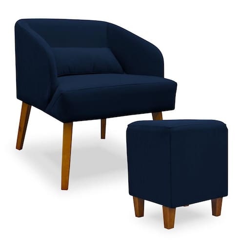 Poltrona Decorativa com Puff Virgínia Veludo Azul Marinho - Montanaris Decor