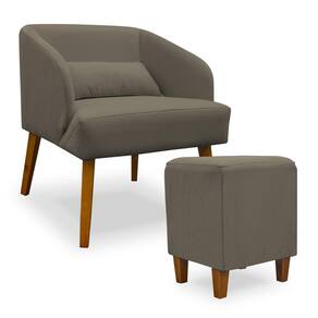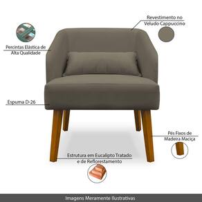 Poltrona Decorativa com Puff Virgínia Veludo Cappuccino - Montanaris Decor - Marrom Chocolate
