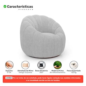 Com estrutura em madeira de eucalipto reflorestada, o conjunto é resistente e durável. A espuma D-24 oferece conforto no uso diário, enquanto o revestimento em bouclê traz sofisticação e textura macia. A base giratória 360° da poltrona garante praticidade, e o conjunto vai montado, pronto para uso. Como toque final, uma almofada vai como mimo para você.