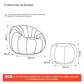 ** POR SE TRATAR DE UM ESTOFADO, AS MEDIDAS PODEM SOFRER UMA VARIAÇÃO DE ATÉ 3 CM.