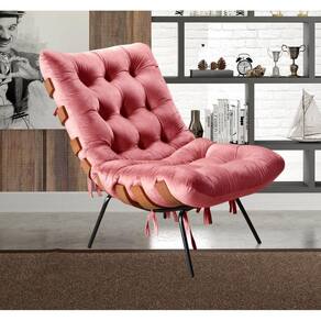 Poltrona Decorativa Costela de Adão Botonê Sala Varanda Recepção - Rosa