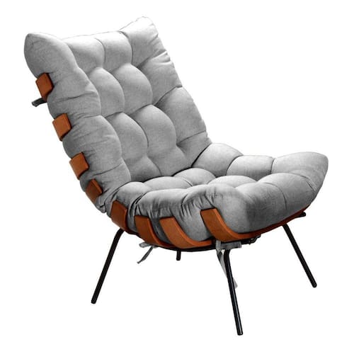 Poltrona Decorativa Costela de Adão Botonê Sala Varanda Recepção - Cinza