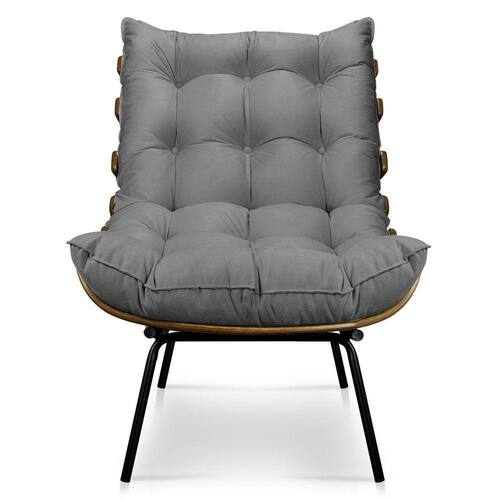 Poltrona Decorativa Costela Sala E Escritório Suede Grafite