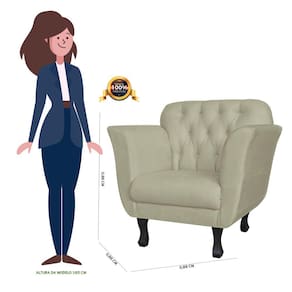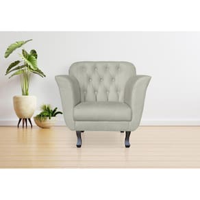 A Poltrona Dália tem um design diferenciado, feito com materiais de alta qualidade e resistência, revestida com tecido suede, madeira de eucalipto e percintas elásticas, pés madeira, com enchimentos em espuma D-26. Possui um design maravilhoso, cheio de charme e beleza, para complementar o seu espaço, podendo ser usada em vários ambientes como Recepções, Sala de Estar, Sala De Jantar, Escritórios, Consultórios, Áreas De Leitura, entre outros. Modelo do encosto com detalhe capitonê, dando um requinte de perfeição ao seu ambiente.