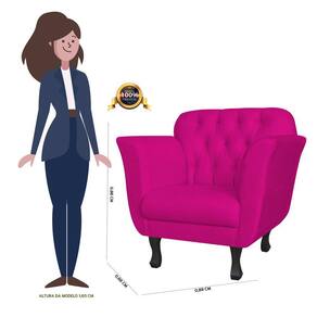 A Poltrona Dália tem um design diferenciado, feito com materiais de alta qualidade e resistência, revestida com tecido suede, madeira de eucalipto e percintas elásticas, pés madeira, com enchimentos em espuma D-26. Possui um design maravilhoso, cheio de charme e beleza, para complementar o seu espaço, podendo ser usada em vários ambientes como Recepções, Sala de Estar, Sala De Jantar, Escritórios, Consultórios, Áreas De Leitura, entre outros. Modelo do encosto com detalhe capitonê, dando um requinte de perfeição ao seu ambiente.