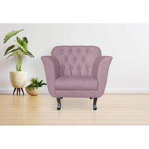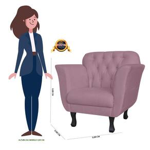 A Poltrona Dália tem um design diferenciado, feito com materiais de alta qualidade e resistência, revestida com tecido suede, madeira de eucalipto e percintas elásticas, pés madeira, com enchimentos em espuma D-26. Possui um design maravilhoso, cheio de charme e beleza, para complementar o seu espaço, podendo ser usada em vários ambientes como Recepções, Sala de Estar, Sala De Jantar, Escritórios, Consultórios, Áreas De Leitura, entre outros. Modelo do encosto com detalhe capitonê, dando um requinte de perfeição ao seu ambiente.