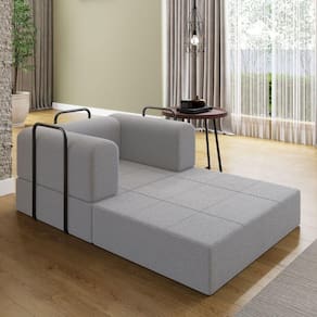 Poltrona Decorativa Diamante Modular Sala Linho Para Sala linho Cinza
