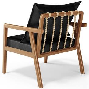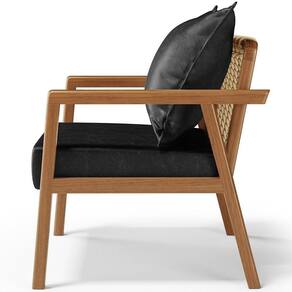 A Poltrona Decorativa Para Sala de Estar e Living Alícia B04 Couríssimo Preto Brilho é a peça perfeita para adicionar um toque de estilo moderno a sua sala de estar. Com sua estrutura em madeira maciça envernizada, essa poltrona de madeira traz durabilidade e elegância para o ambiente. O assento estofado e revestido com materiais de qualidade oferece conforto excepcional, permitindo que você relaxe com estilo. Já o design moderno combina perfeitamente com qualquer tipo de decoração, tornando-a uma escolha versátil para qualquer sala de estar, living, recepção, escritório e diversos outros ambientes. A cereja do bolo fica por conta do detalhe da corda trançada no encosto com a almofada sobreposta, um charme à parte.