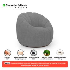 - Base giratória 360° que alia praticidade e elegância