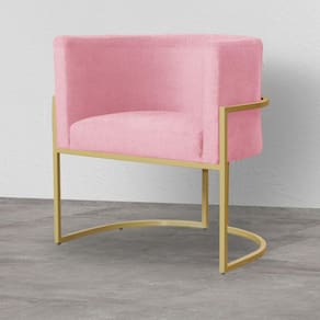 Poltrona Decorativa Estofada Base de Ferro Sala Luana Suede Rosa Barbie - LM DECOR