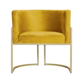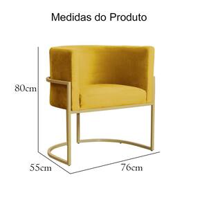 Poltrona Decorativa Estofada Base de Ferro Sala Luana Veludo Mostarda - LM DECOR