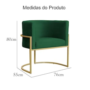 Poltrona Decorativa Estofada Base de Ferro Sala Luana Veludo Verde - LM DECOR