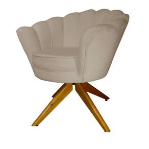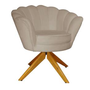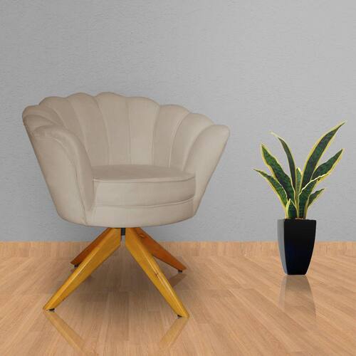 Poltrona Decorativa Estofada Base Giratória de Madeira Pétala Suede Cappuccino - LM DECOR - Bege Médio