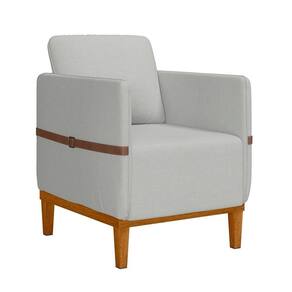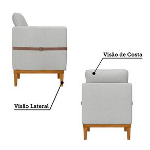 Poltrona Decorativa Estofada com Pés em Madeira Maciça Estelí Espresso Móveis Linho Cinza Claro/Sintético Caramelo