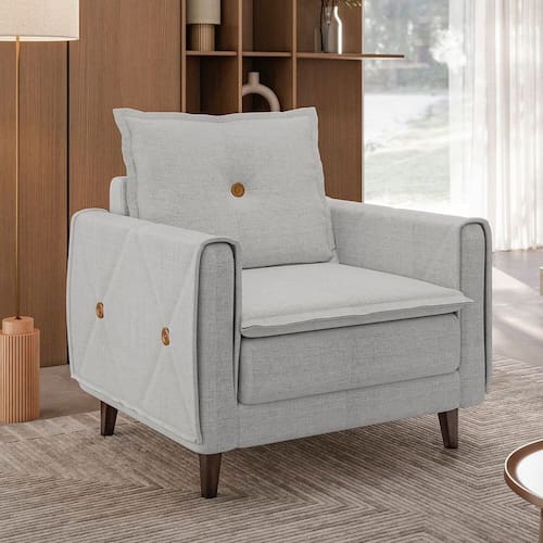 Com design que mistura o clássico ao contemporâneo, a poltrona Sololá é perfeita para ambientes elegantes e acolhedores. O tecido linho traz leveza ao visual, enquanto os detalhes em costura decorativa com botões na lateral elevam o padrão estético do móvel. A almofada solta no encosto proporciona conforto personalizado, sendo ideal para momentos de relaxamento.