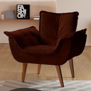 Os pés são de madeira maciça e o sistema de montagem dos pés com cantoneira de fixação em aço e parafusos brocantes que proporcionam firmeza e consistência. Acompanha Almofadas extras: Não Acompanha Puff: Não Almofada do assento: Fixa Almofada do encosto: Fixa Altura do assento até o chão: 45 cm Altura do Encosto: 46 cm Altura dos Pés: 29 cm Ambiente Principal: Sala de Estar Complexidade da Montagem: Baixa: pode ser montado por uma pessoa sozinha Cor: Veludo Marrom Cor do Produto: Veludo Marrom Design Assinado: Não Enchimento do Assento: Espuma D-28 Enchimento do Braço: Espuma D-28 Enchimento do Encosto: Espuma D-28 Encosto para a Cabeça: Não Estampado: Não Extensível: Não Firmeza do Assento: Médio Itens Inclusos: 1 Poltrona, Kit Pés e Manual de Montagem Manual de Montagem e Instalação: https://cdn2.madeiramadeira.com.br/prd/montano-estofados/845018-poltrona-eros-montagem.pdf Material do Braço: Madeira maciça, MDF, espuma, pet fon e tecido Material dos Pés: Madeira Maciça tratada Modelo de Poltrona: Fixo Necessita Montagem: Sim Origem do Produto: Nacional Peso: 15,5 kg Possui Percintas Elásticas: Sim Possui Pés: 04 Possui Rodízio: Não Recomendações de Uso, Manutenção e Limpeza: A limpeza do revestimento deve ser feita com escova ou tecido de algodão branco levemente umedecidos em água morna, sabão neutro ou produto específico. Não usar produtos corrosivos nem a base de solventes, como: cloro, alvejantes, detergentes, entre outros;Não expor o estofado à luz direta. Mantenha portas e janelas sempre protegidas com cortinas e blackout. A exposição contínua à radiação da luz, danifica o revestimento, apodrecendo os fios, trincando a superfície e desbotando as cores;Não lavar o revestimento das almofadas pois pode desfiá-las, abrindo as costuras;Não utilizar o estofado para fins diferentes do que foi projetado: ficar em pé, pular, arrastar, sentar nos braços, peso na caixa traseira, entre outros tipos de ações que poderão danificar o produto. Sistema de Montagem: pés e parafusos Suporta Até (kg): 120 kg Tecido Predominante: Veludo Tipo de Assento: Fixo Tipo de Encosto: Fixo Tipo de Espuma do Assento: Soft Tipo de Espuma do Encosto: Soft Tipo de Poltrona: Decorativa Ean: 7908506261877