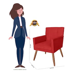 Poltrona Decorativa Estofada Para Hall de Entrada Onix Corano Vermelho - LM DECOR