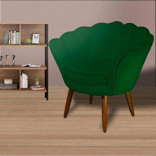 Poltrona Decorativa Estofada Para Hall de Entrada Pétala Suede Verde - LM DECOR