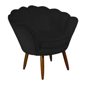 Poltrona Decorativa Estofada Para Quarto Closet Pétala Suede Preto - LM DECOR