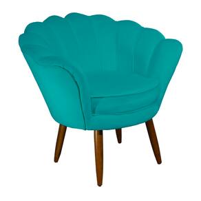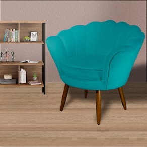 Poltrona Decorativa Estofada Para Salão de Beleza Pétala Suede Azul Turquesa - LM DECOR