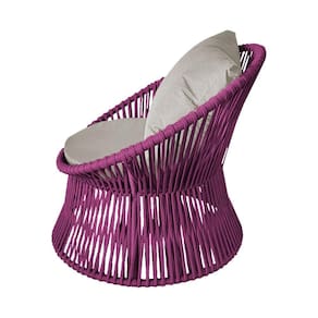 IMAGENS MERAMENTE ILUSTRATIVAS REALIZADO EDIÇÃO, PODENDO HAVER UMA PEQUENA VARIAÇÃO DE COR DEPENDENDO DE CADA TELA OU MONITOR.Poltrona Decorativa Estofada Sol com Almofada em Corda NÃutica e Base em AlumÃnio Cinza/rosa